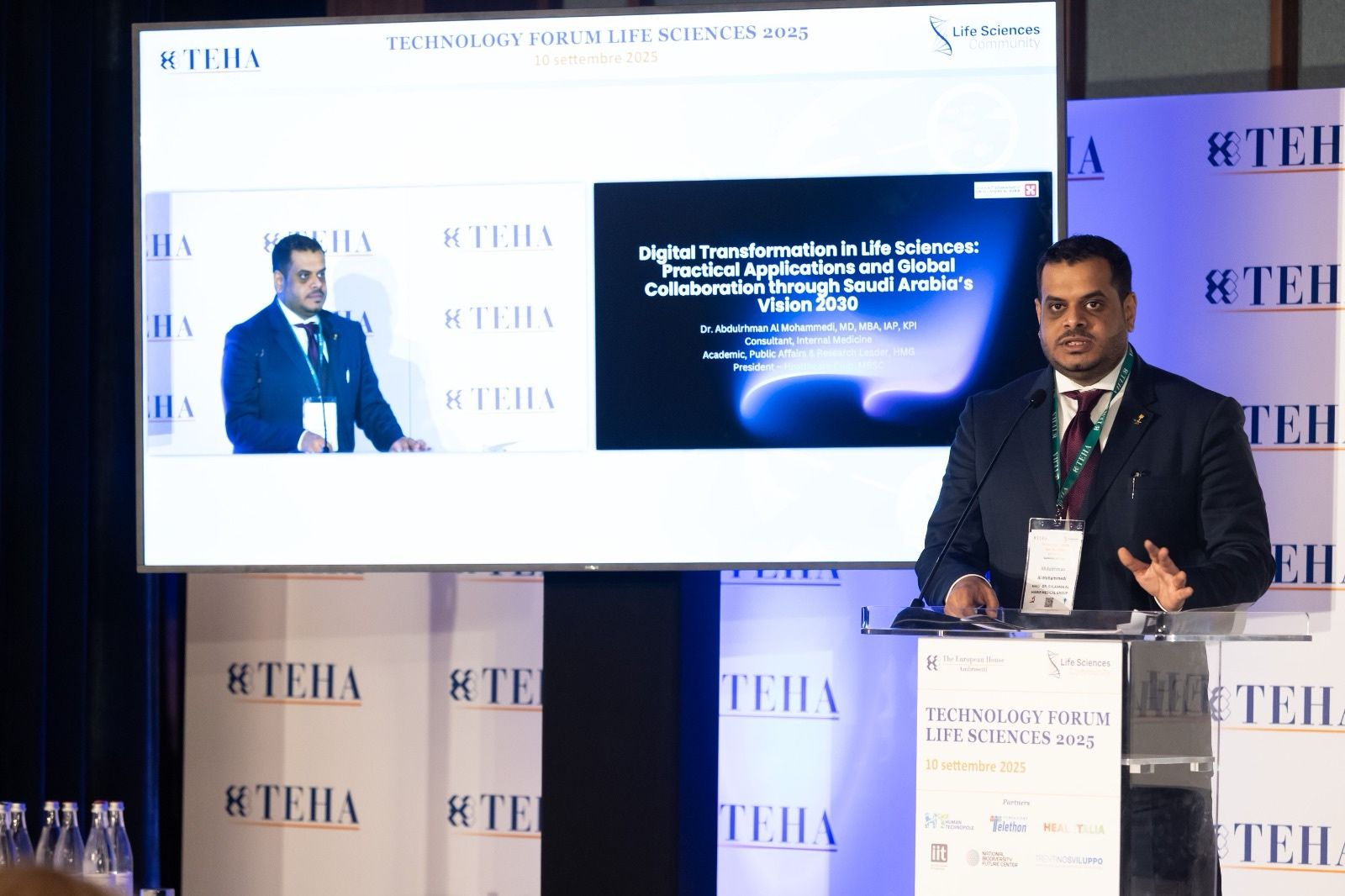 He has represented MBSC on national and international stages, including Harvard’s AI in Clinical Medicine program, a Vision 2030-focused hackathon with Team Innovision, and most recently at the Technology Forum Life Sciences 2025 in Milan, showcasing Saudi Arabia’s healthcare innovation on a global platform.